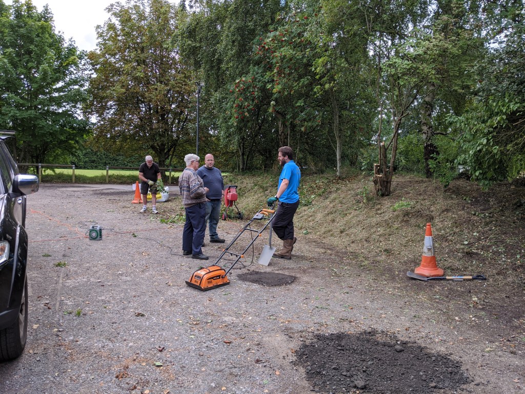 In addition to some Covid secure works, we also did some overdue maintenance – repainting a neglected storeroom, renewing a lot of the safety signs and filling in the much grumbled about holes in the car park. Several members of the team also brought the car park edges under control, re-establishing a number of car parking spaces and improving visibility. There were also several odd jobs to be completed such as cleaning the holds on the bouldering wall and dusting the CCTV cameras!