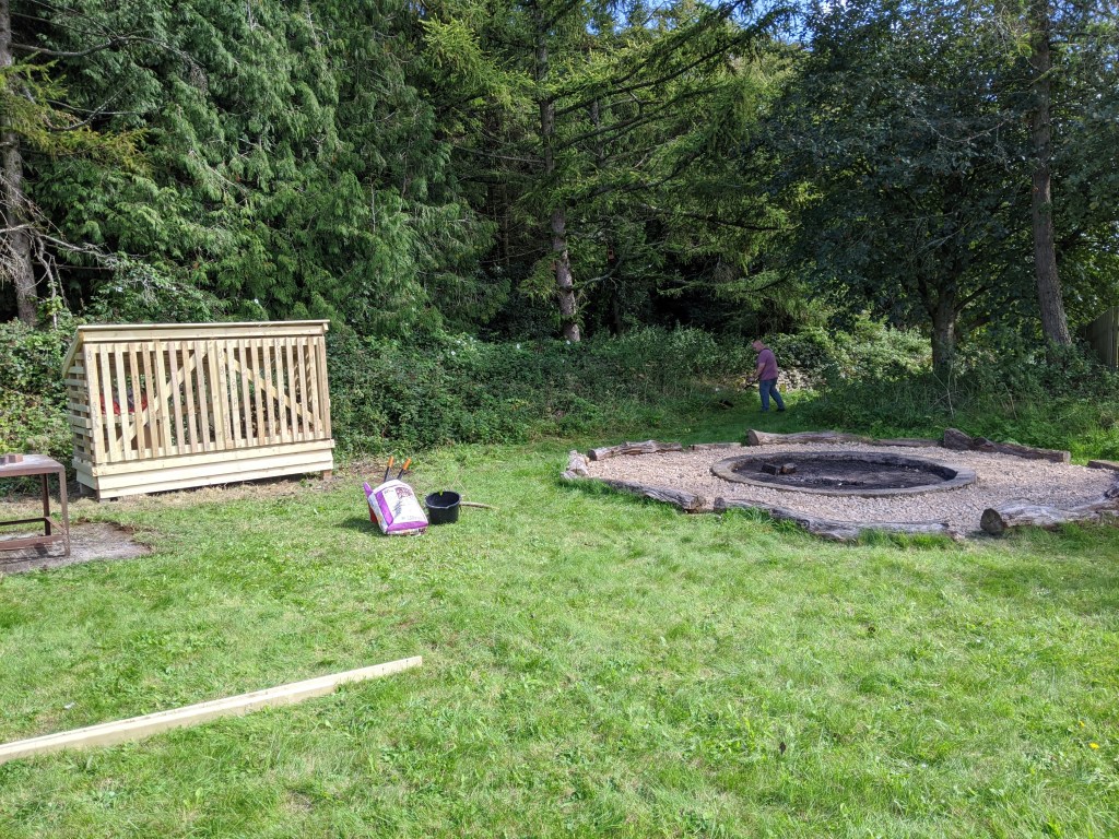 One of the final steps was a working weekend over the first weekend in September, where a group of volunteers got together to work through all the things that our preparations had identified as essential before we reopened. In terms of Covid secure works, we’ve removed the soft furnishings from the main hall and replaced them with frosting on the patio windows, and covered all of the display boards with sheeting that can be cleaned much easier, and is kinder than removing each group of young peoples work. We’ve also built a new outdoor woodstore and renewed the campfire circle (with thanks to Chalford Building Supplies for the wood and hardcore). The current guidance (September 2020) suggests that our youth sections are going to be meeting outdoors to enable social distancing and we’ve worked hard to make this a nicer, safer, place for the young people in our group.