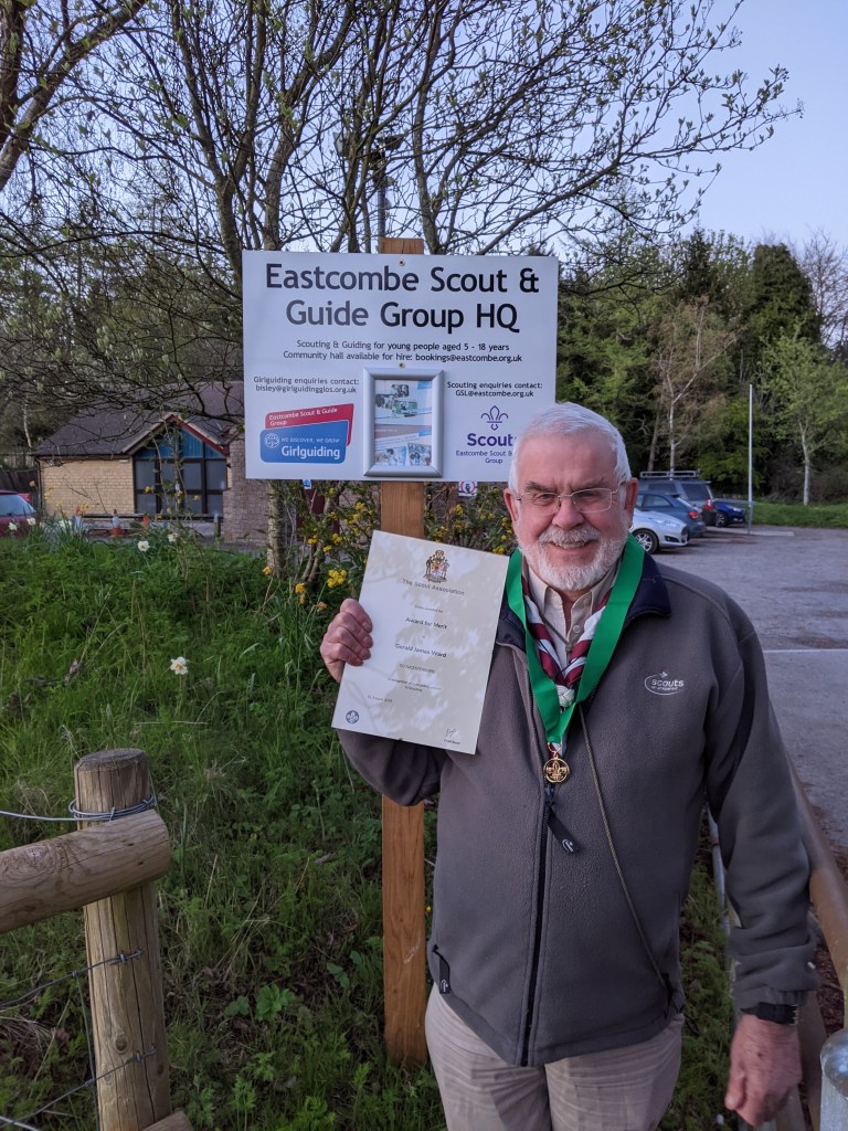 Scouting presents good service awards every year and what with the lockdown and the like last year, some of the awards took a little while to reach their intended recipients in 2020 and 2021. So Eastcombe Scout and Guide Group is proud to congratulate Tony (Group Treasurer) for reciving the Bar to the Award of Merit in 2020, as well as Tigz and Guy (Scout Leader & Assistant Scout Leader) and Petra (previous Cub Leader) who recieved the Chief Scouts Commendation for Good Service in 2020 too.